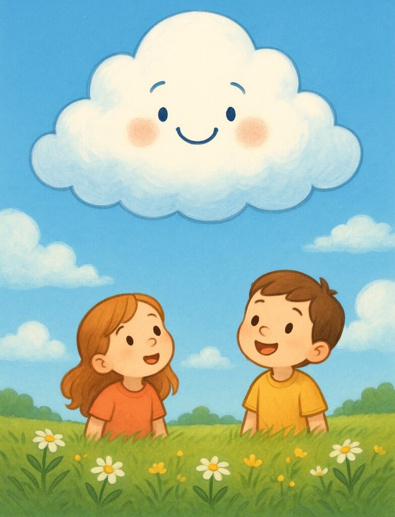 Na błękitnym niebie, tam gdzie wiatr tańczy z promieniami słońca, mieszkała sobie mała chmurka imieniem Puszek. Była biała, mięciutka i wyglądała tak, jakby ktoś uformował ją z waty cukrowej. Lubiła dryfować po niebie, zmieniać kształty i bawić się w zgadywanki z dziećmi, które patrzyły na nią z dołu.