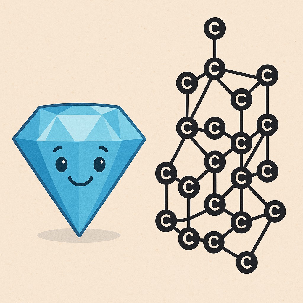 Diament jest zbudowany tylko z jednego pierwiastka – z węgla (C). Ale to, co czyni go wyjątkowym, to sposób, w jaki te atomy węgla są ze sobą połączone.