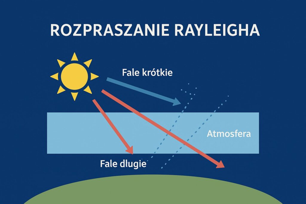 Światło białe ze Słońca składa się z fal o różnej długości (kolorów). Kiedy przechodzi przez atmosferę, „zderza się” z cząsteczkami powietrza (głównie azotem i tlenem).