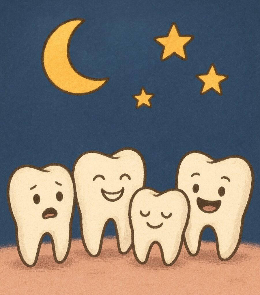Wyobraź sobie, że twoje ciało to domek, a zęby to małe drzwi. Kiedy robi się zimno, domek próbuje się ogrzać. Mięśnie zaczynają się szybko ruszać – to takie małe drgania, które pomagają zrobić ciepełko w środku. A że mięśnie poruszają też szczęką, to zęby stukają o siebie: kle, kle kle!