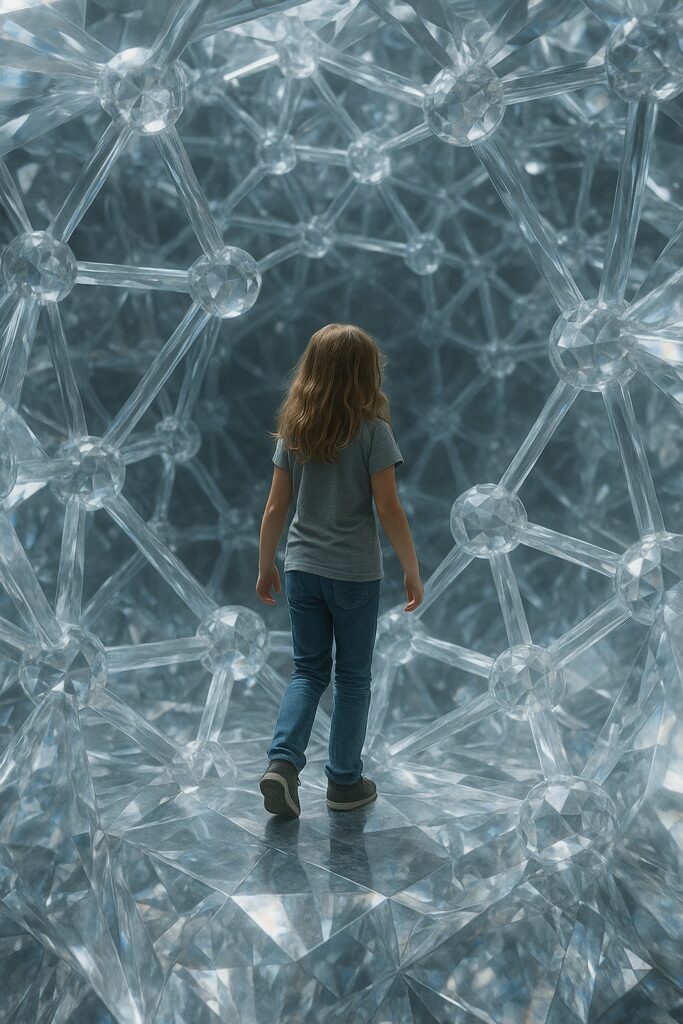 – Wyobraźcie sobie, że każdy atom tego kamienia trzyma się bardzo, bardzo mocno z czterema innymi. Jakby wszyscy trzymali się za ręce, tworząc niesamowicie mocną sieć, której nic nie potrafi rozerwać.