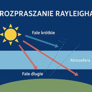 Zjawisko rozpraszanie światła na bardzo małych cząsteczkach powietrza nazywa się rozpraszaniem Rayleigha. Światło białe ze Słońca składa się z fal...