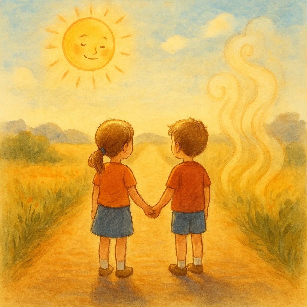 Było lato. Takie prawdziwe lato — takie, kiedy trawa jest złota, powietrze stoi w miejscu, a Słońce świeci tak mocno, jakby chciało opowiedzieć wszystkim swoją historię.